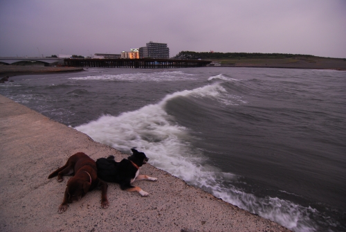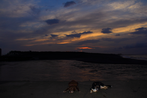 あさは曇ってた、夕方も曇ってた。朝海へ行った後、買い物に付き合ったらかなり暑かった。なのでお家に帰ってエアコンの効いたお部屋でゆっくり寝た。今日はモスラの映画はやってなかったのでみんな自分の好きな温度の部屋で寝た。ボクのお部屋が一番寒い部屋で、付き添いの人は毛布をかぶって眠るんだ。夕方になって少し涼しくなったころなんだか人のいっぱいいるところに遊びに行って、しばらくは夕涼みをウサと二人っきりでしてたんだけど、途中でお友達がいっぱい来ておやつをいっぱい食べた。