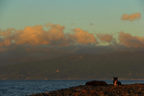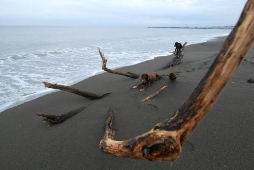 海はまだまだ漂着物が片付いていないので歩きづらいし、お日さまが出てくると