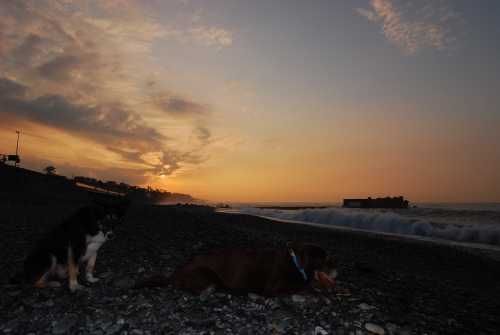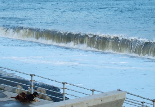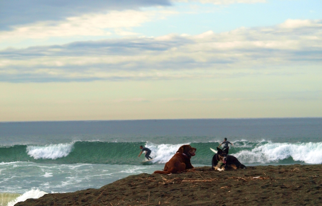 あさの海も、夕方の海もそれなりに波が高かった。