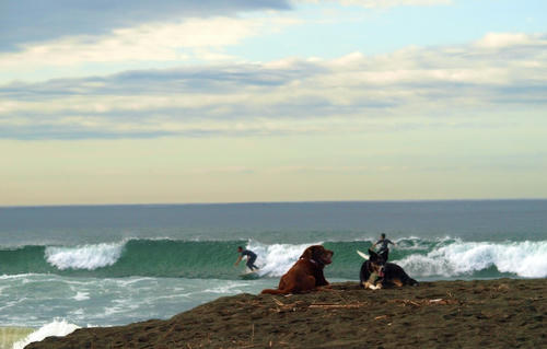 海は良い波があるみたいでサーフィンの人でにぎわっている。