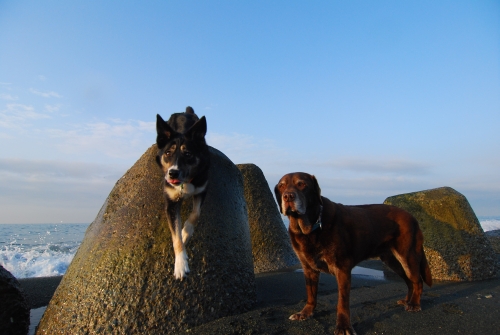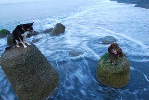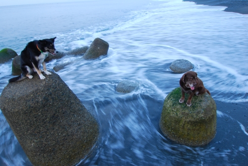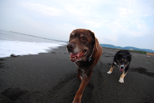 昔はボクが先に波から逃げられたんだけど、最近はぱぱのほうが逃げるのが速い。