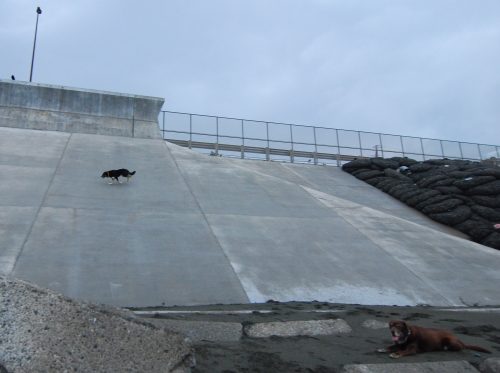 あさ海に行くと釣り人は居なかった。散歩してる人もいなかった。ボクも早く帰りたくなった。