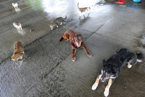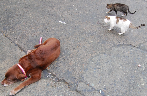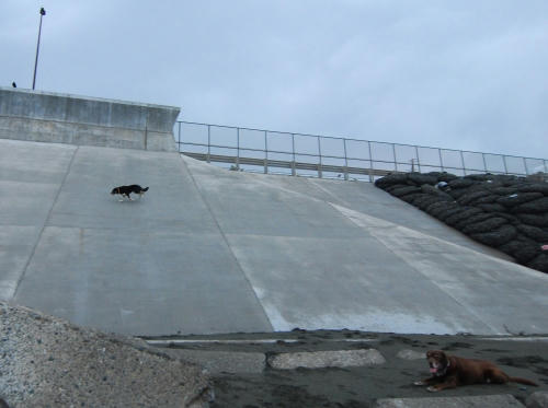 まあ、波の飛沫が飛んでくるのでどっちにしろ濡れているので潔く波に襲われるのも一興かとか思ったりもする。ただどっちにしろこんな天気の日にはすることが無いので早めに切り上げる事になった。でも、車に乗ろうとするとネコさんがやってきたのでネコの観察で時間を使ってしまって帰るのを決意したころには朝食を買い出しに行ける時間になっていた。