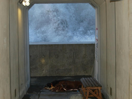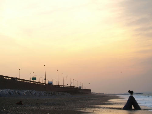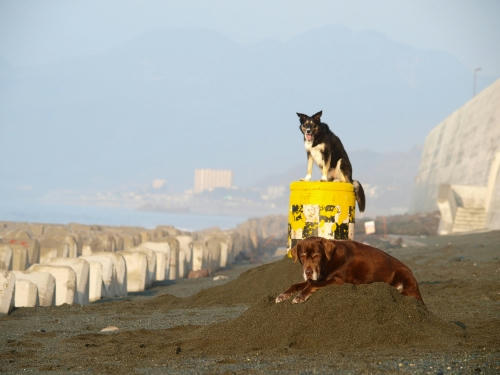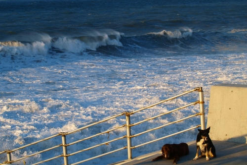 ボクタチは棒に当たらないように海側によけて風上に向かって歩いた。