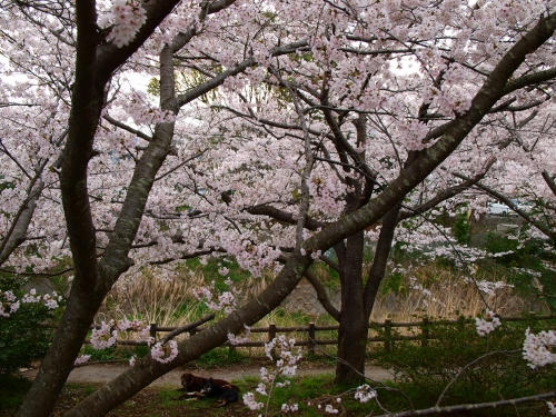 今日もお花見。少し暑かったのでボクはかなり休みながら歩いた。