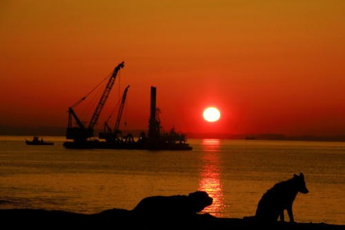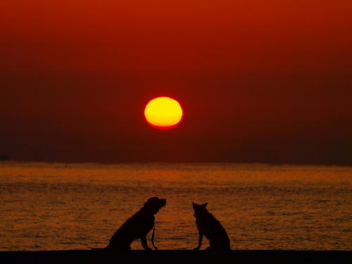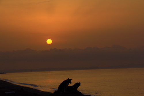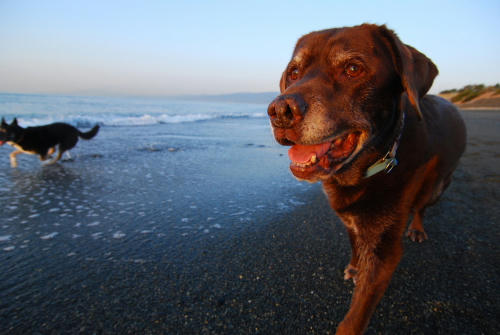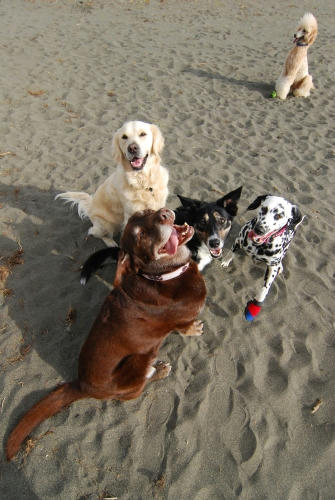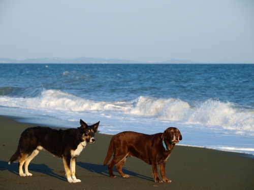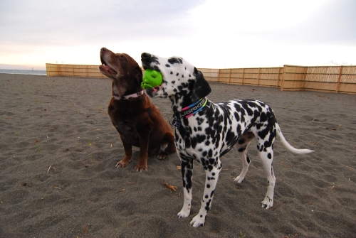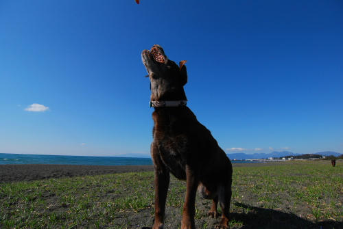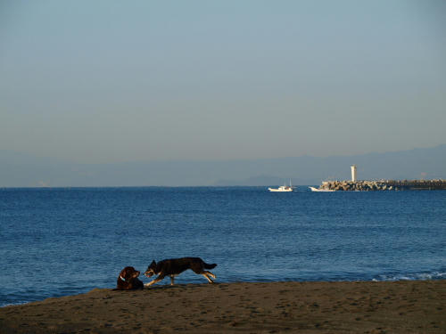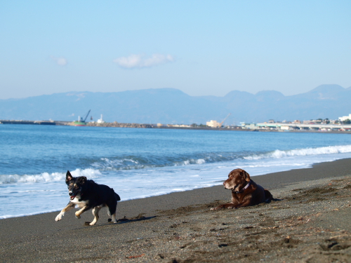 凄い風が吹いていた。なので遊ぶ場所は限られていて、波打ち際を風上に歩いて防風の柵のある場所までやってきていつものようにお仕事をしていたらクロエちゃんがやって来た。