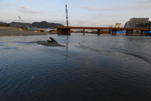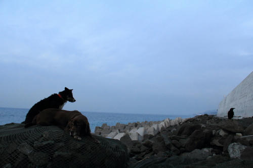ボクタチがこの前浅瀬を渡って待機していた場所は完全な地続きになっていた。なのでボクタチが普通に寝そべっているとカラスさんたちが多数やって来た。それではボクタチもいづらいのでこの場所に移動した。今日はわりと暖かでそんなことをしてても他のことをしてても眠くなるくらいで退屈だった。なんて思っていたらもう海での滞在時間は終わってみたいで海の出口に向かってわりと早足で歩かなきゃいけなかった。