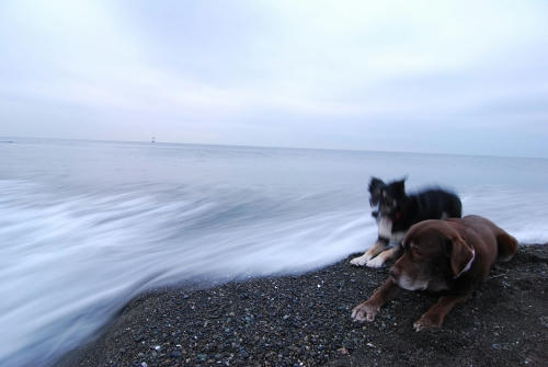 朝はすごくさむかった。こんなとこに居るけどボクはぱぱに抱きかかえられてやってきた、ウサは自力でやってきた、この後カラスさんもやってきたけど当然それは飛んできた。なぜここに居るかというとこの前の波の高い日にここの地形が変わってここだけ浅くなったのが記念になると思ったので上陸しちゃったんンだ。