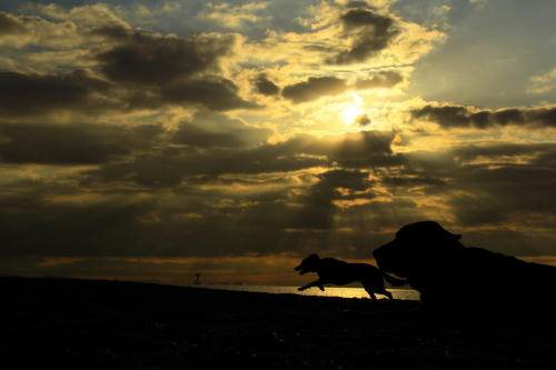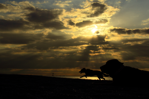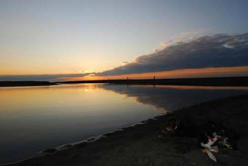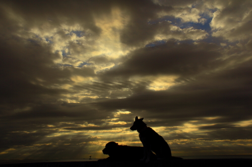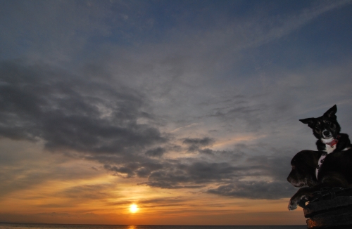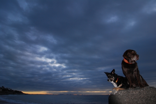 なんだかんだいっても初日の出を見に行くのは早く寝てしまったからだ。それで、ウサがぱぱを起こしてしまったんだ。ボクんちのあたりの海にはそんなに見物する人はいない。なのでわりとゆったりと見物した。見物が終わると、隣で見物していたおねーさんが「ワンちゃんの写真を撮らせてください」とお願いしたので気前よく撮らせてあげ。