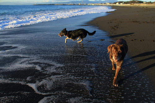 きょうはネコさんはついてこなかったので寒いこともあってあまり歩かなかった。午前中はぱぱはテレビを見なきゃいけなかったのでテレビを見ながらマッサージをしてもらった。マッサージをしてもらってると、ウサがボクとも遊べと言って邪魔をするのでぱぱはいろいろと忙しかったみたいだ。夕方は早めに海に行ったけど人が多かったのでカラスの観察をしながら寝そべっている時間の方が長かった。