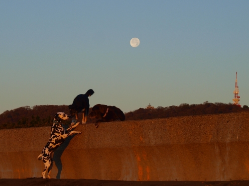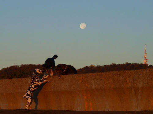 今日はわんにゃんの日。この前のお月さまの隠れる日に寝てて見られなかったぱぱは、お月さまにしゅうしんしてなかなかボクとウサを解放してくれない。例によってクロエちゃんとラブリーちゃんが騎兵隊のように救出に来てくれたので1回目の救出は成功した。