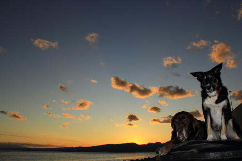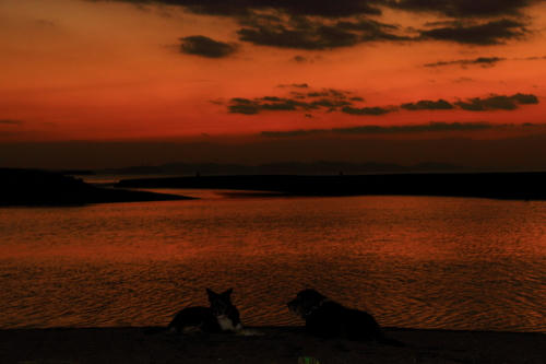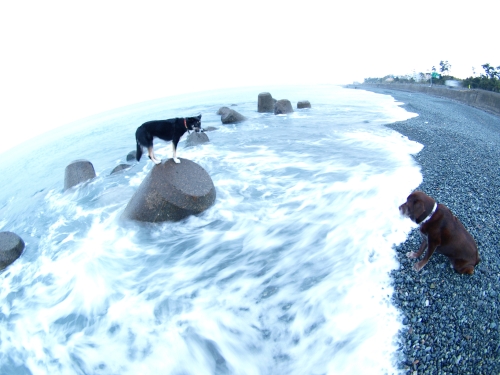 あさはいろんな人からおやつをいっぱいもらった。なのでずいぶん長く海に居た。お昼にはサバのお刺身を食べた。たぶんぱぱがここのところ毎週食べてるので飽きてきちゃったのでボクタチにもくれたんだと思う。サバのお刺身って美味しいよね。夕方前にお山に行ったけど全然歩く気分ではなかった。ウサもいつもと違って走り回る気力は無かったみたい。