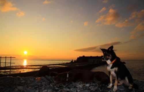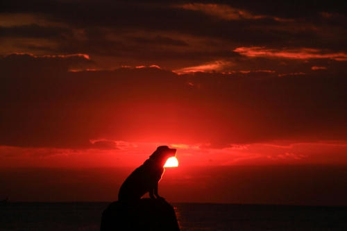 暖かかったり、寒かったりでなかなか熟睡できない。夜の真ん中で起きて水をぴちゃぴちゃのんでると残り少なくなったのでぱぱが追加してくれた。それからしばらくするとウサに起こされることもなく起き上って海に出かけた。海に着いた時には相変わらず暗くて、少し遠いところで、漁師のおじさんが火を燃してるのが見える。ウサはネコさんがうろうろしているのを警戒して姿勢が低い。ボクはそんなことすべてが煩わしくて歩みを止める。