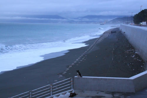 そんな機械の音を聞きながらいつもの場所に向かうと、地形がかなり変わっていていつもは昇りにくかったブロックにも昇れるようになっていたのでぱぱは早速そのブロックにボクを乗せた。その瞬間少し高かった波がボクとぱぱとぱぱのカメラを襲ったので全員水浸しになっちゃって、その場所でのいつものお仕事は中止になった。