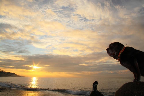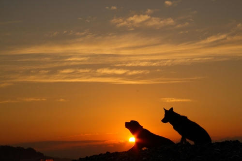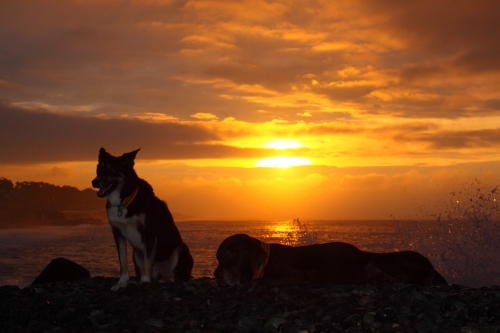 ずいぶん早くにみんなで起きたけど、海に出かけたのは普通の時間だった。海には今日の天気を予想したのかカメラを持った人が空の色が変わるのを待っていた。他にもバーベキューの支度をすでに始めている人とかもいて、にぎやかだ。ワンコもいつものワンコが普通にやってきてウサは白い大きなワンコを警戒していた。3匹のミニチュアダックスフントには興味を示さなかった。ボクハ夏バテであんまり歩き回りたくはなかったので少し歩いては休んでいた。