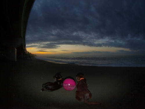 夕方はかなり早くに暗くなったので急いで海に行って急いで帰って来た。