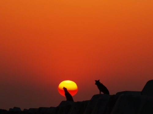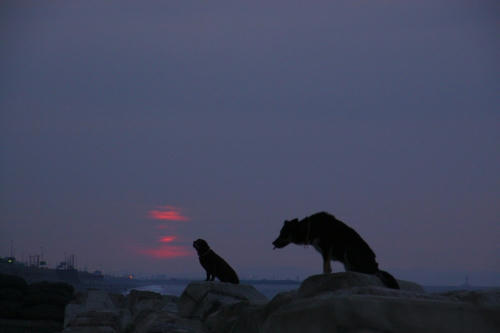 昨日と似たような夜明で、昨日に似たような感じで砂浜を走り回った。