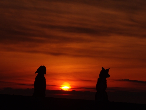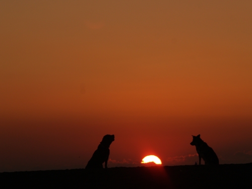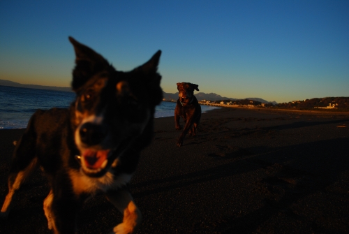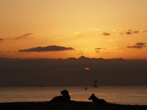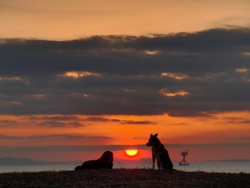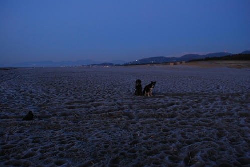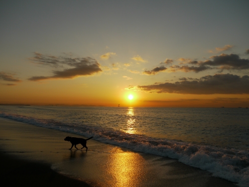 ぱぱが昨日忘れた手袋は無事に発見された。当然ぱぱは別の手袋をして出かけたんだけど、今日使った手袋の方が少し大き目みたいで時々手袋をはめなおしたりしてた。お日さまが昇ってくると昨日と同じように波打ち際をぱぱは後ろ向きにボクは前向きに走って帰った。確か昨日みたいには寒くなくて良かったかも。