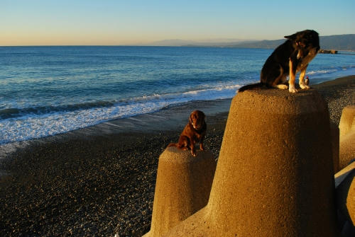 それからまた別の海に移動してクロエチャンたちに会った。今日はお友達のワンコがたくさんいてみんな遊んでいるのでぼくも負けないように遊んだらすごく疲れちゃった。だからぱぱがおやつを持ってきても寝たまま食べてた。ぱぱはすることが無いのでぼくたちのおやつを作ってた、すごく良いにおいのおやつが出来たのでそれはちゃんと座って食べた。