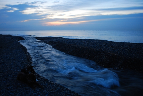 昨日とは違う川にやってきた。確かこの前来た時にはこんな砂浜はなかったのに少しだけ探検できるくらいの大きさでプチ徘徊するにはちょうどよさそう。でも、海側で気持ちよく寝そべっていて油断していたら波に襲われたから川の方で寝そべる方が安全だね。