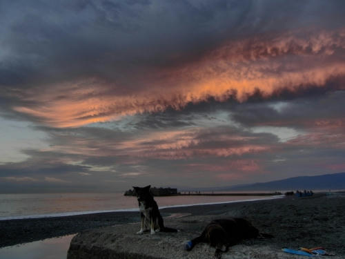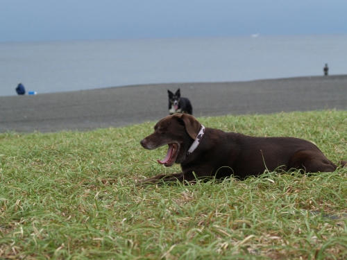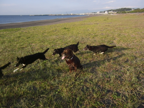 昨日の夜からずーーーとザアザザアと雨が降ってるので外には出られない、ぱぱは仕方がないので朝起きるとおやつを作り始めた。そのおやつが出来上がったころ雨もあがったので海に出かけた。海にはクリがたくさん落ちていた。それからしばらくして晴れたのでお出かけした。当然朝作ったおやつを持参してだ。いつもの川の近くの海に近づくとウサは期待でうれしさ満開の顔だったんだけど、川を通り過ぎるとふて寝し始めた、それでも次の川に近づくと機嫌がよくなって車の外から入ってくる空気を大きく吸い込んでいた。そしてたどり着いたところでしばらく過ごした後でさっき通り過ぎた川の近くの海に遊びに行った。波が大きくってみんなおおよろこびだった。