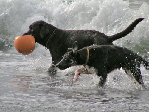 天気は良いのに釣り人は少ない。ウサと2頭で広々スペースを走り回れる。