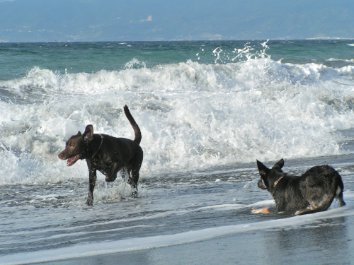 砂浜には番犬がいて飛び掛ってくるから少しだけ居て直ぐに海に戻ろう。