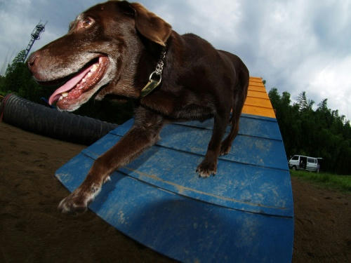 ぱぱはお山に登って修理を始めた。ボクはそれを見て旗のずーーーと向こうまで歩いてった。かなり遠くまで行けたので、やったね!て思ってたら、ウサに連れ戻された。