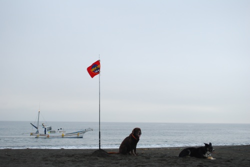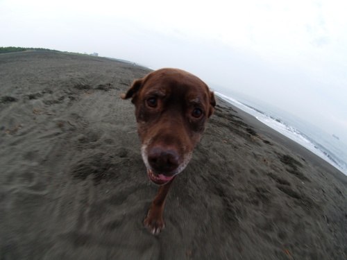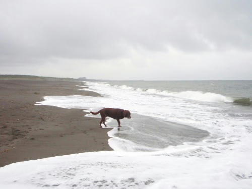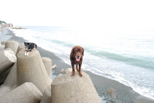 ひさしぶりに泳いだ。別に止められていたわけじゃないんだけど、波が高かったり、別の遊びをしてたりで、縁が無かったんだね。今日は波はたかかったんだけど、波の無いところについ飛び込んじゃったんだよ。それでー、ホントはサッカーボールを泳いで取ってくる遊びをついでにしちゃいたかったんだけど、よい噛み具合のやつの持ち合わせが無くて角材を持ってくることに成っちゃったんだよね。