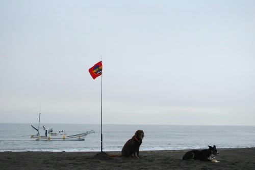 この旗はぱぱがカラスさんに集合場所を知らせるために立てた。でも大漁旗と勘違いした船が寄って来ちゃったかも?当然カラスさんもしばらくするとやってきたけど、ぱぱもボクもいつものカラスさんなのかどうかは見分けがつかない。