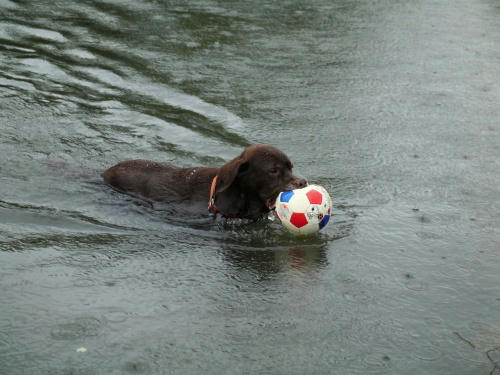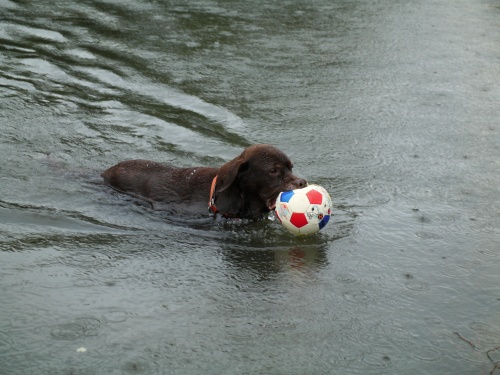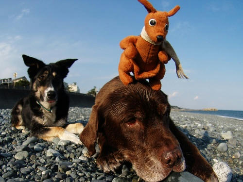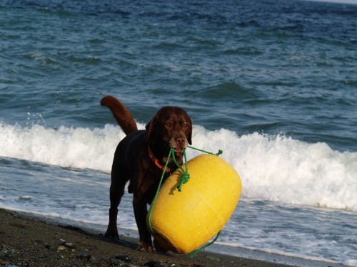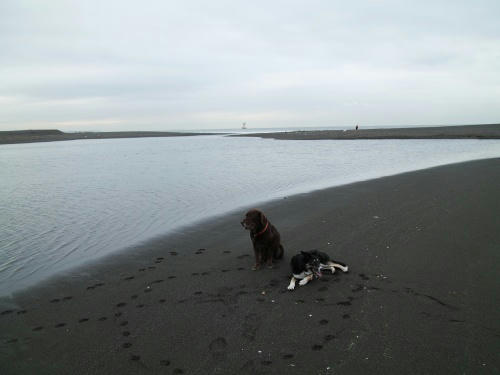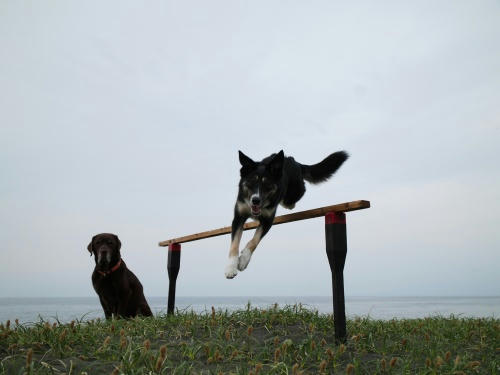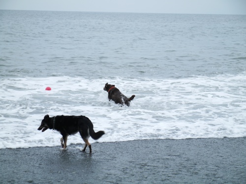 あさからあめ。という事で今日は最初から海に入る事がきまってたみたい。あさは未だ波もなかったからわりと楽しく遊べたね。昼間は凄い雨と風だったけどぱぱたちはお出かけでボクタチはお留守番。ぱぱがチャームのニオイをつけて帰ってきたのでウサは首を傾げてた。