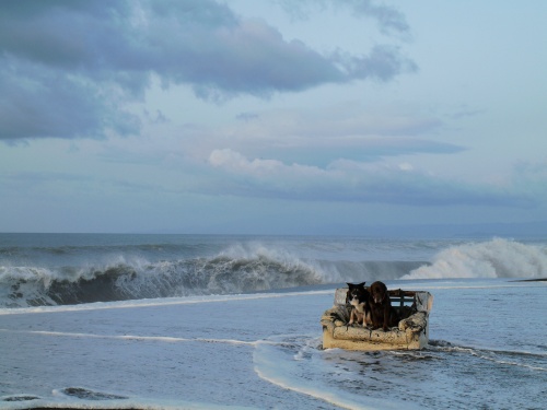きょうの座り物はらくちんだった。でもやっぱめづらしいのか?ボクタチの後は若いカップルが待ってて写真を撮ってた。このカップルもめづらしくて、女の子が男の子の写真をいっしょうけんめい指示を出しながら何枚もとってたね。ただ、逆光で撮ってる写真が多そうだったのでアイドルってわけでは無さそうだね?風が強かったのでお昼は山に行った後川で泳いだ。そんで夕方は海に行ったけど朝よりもすごい波だったのであまり長居はしなかった。