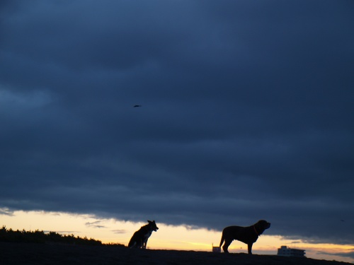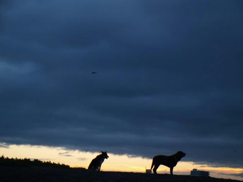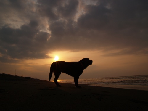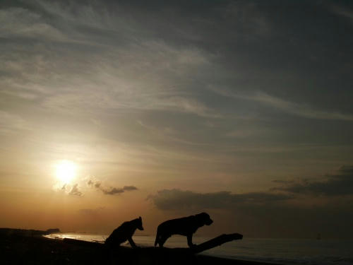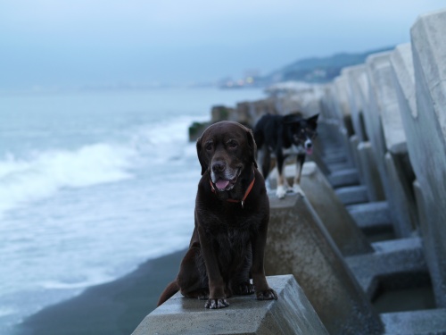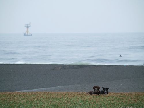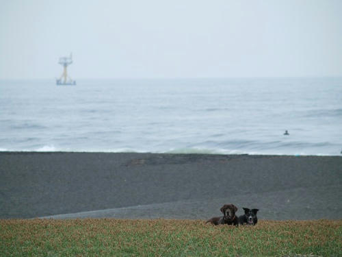 きのうのあめはすごかったみたい。なのできょうは朝も夕方も海の波は高い。ボクの座る予定だったらしいタイヤは無くなっていて流木だけが残されてた。少しだけ流木に座らされてそれからボール遊びをしたけど暑くなってすぐに止めちゃった。
