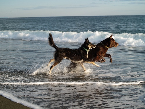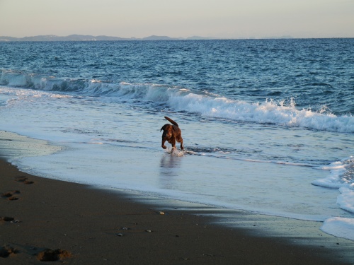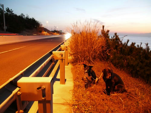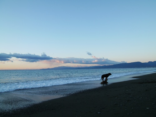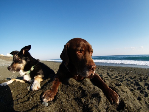 きのうぱぱの作ったお山は未だ残ってた。朝はすごく寒くて近所のおじさんは釣りに行くのをあきらめて大掃除をしてたみたい。今日は80センチのスズキが釣れてたのをぱぱが教えてあげたら、近所のおじさんが今年釣った最大サイズは90センチなんだって教えてくれた。その後会った知らないおじさんはウサのことをすごく誉めてた。「このワンコは良いねえ、すごく足が長い!良いワンコだ!」ボクに関しては「この子はうちに居る子の色違いだけど足はあんがい長いよね」。ボクタチの価値は足の長さで決まるんだ?今日のおやつのシメは隣のおじさんが釣ってきてくれたアジのお刺身を少し。