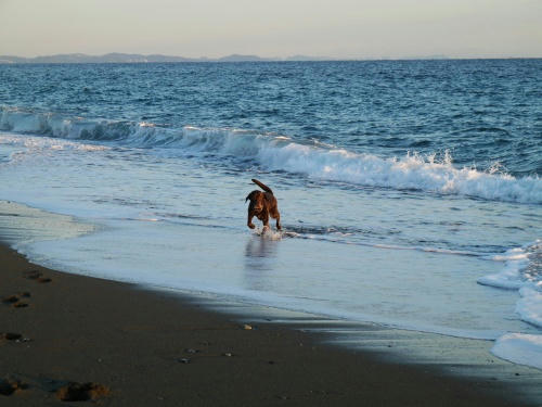 ウサの爪が割れたのでここんとこ何日かは一人で海に来てる。ウサはお留守番がきらいなのでお部屋で大騒ぎしてるみたいだけど、海から帰った後で芝生のある場所へ出かけるのでお昼ねするときにはイッショにぐっすり寝てるんだ。