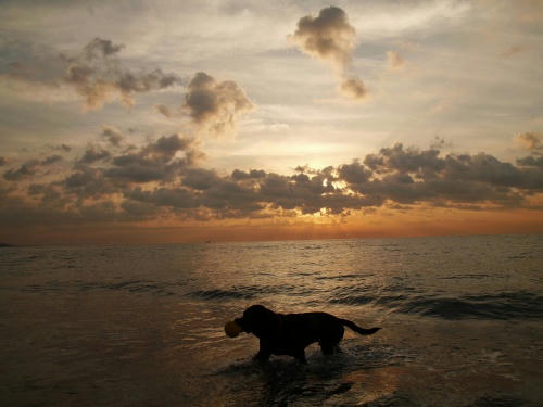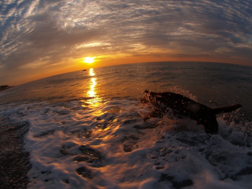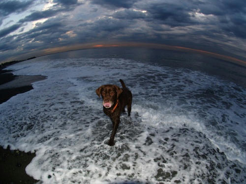 うみに到着したときには寒くて海に入るなんてことぜんぜん考えてなかったんだけど、ぱぱと歩いているうちにだんだん暖かくなって、いつの間にか海に入っちゃってたんだよね。今日はボールは持ってきてたけどそんなわけでボール遊びはしていない。