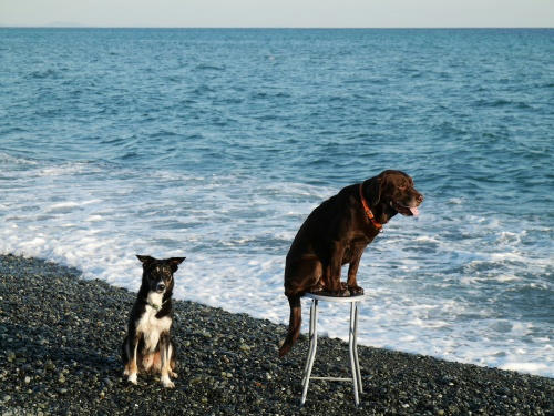 ぱぱは朝からキッチンに入って何かしてたけど、海で食べるおやつのソーセージを切ってたみたい。きょうは豪華にソーセージとパンとヤキイモが海でのおやつのメニューだったんだよね。で、海でボール遊びをする予定だったんだけど、今日使う予定のボールを忘れたみたいで急遽石投げ遊びに変更された。海の水は温かくてぱぱの長靴も久しぶりにイッパイ水がはいってよい音がしてた。