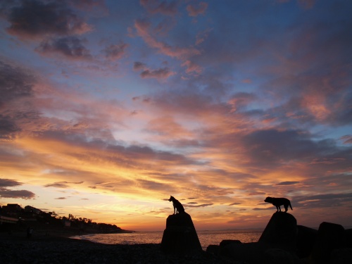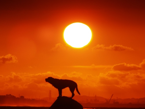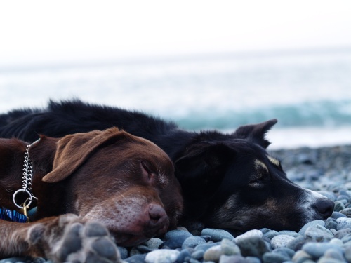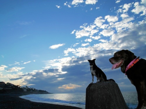 今朝も未だ涼しかった。で、朝ぱぱに起こされて散歩に行く気持ちがないことをアピールしたんだけど、ウサが行く気40%くらいあったのもあってけっきょくは海に出かけちゃった。とりあえずすることも無くて、波からは少しはなれた位置で朝なのにお昼寝の時間。