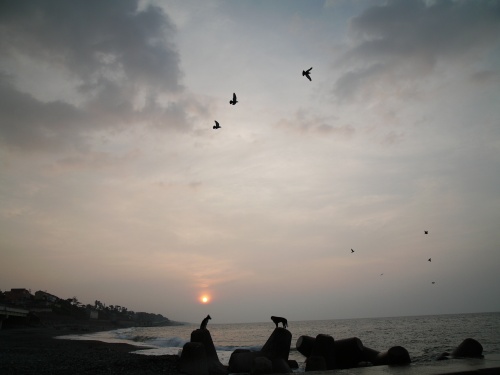 予定と違ってぱぱを起こせなかった。いつものようにぱぱの横で寝てたんだけど今日は随分涼しかったので熟睡しちゃって起こす前におきられちゃった。やっぱり今日も海に着いて寝そべってたら眠くなったんで寝ちゃった。