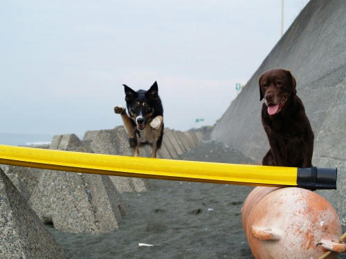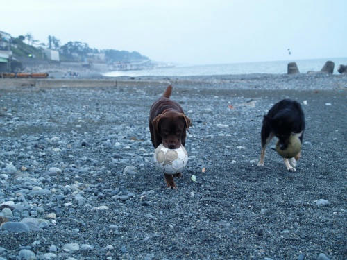 このボールはずっと海においてあるやつだ。だからウサもあまり興味が無くて、僕だけで遊べる。このスタイルが気楽で良いんだけど、いろいろと難しい。