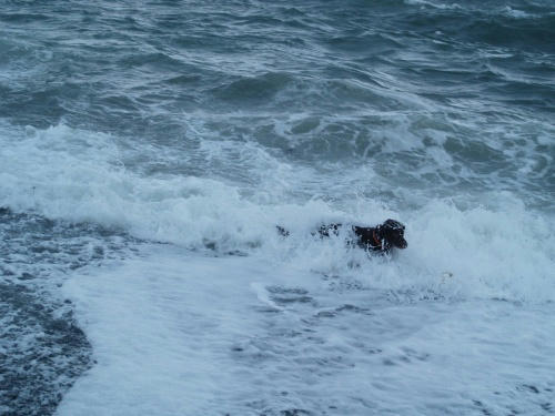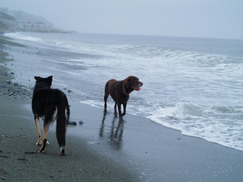 すんごいあめだったよね。うちのシャワーを浴びるより雨の中に居た方がきれいになりそうだったもん。そんな中でボール遊びをすると盛り上がるよね。ぱぱの長靴は雨量計みたいに水がはいってくるし、波はちゃんとボールを押し戻してくれて、それを風が僕らにむかって投げてくれる。なんて幸せな朝のヒトトキだったんだろう。それに比べて昼の暑さはいただけなかったね。