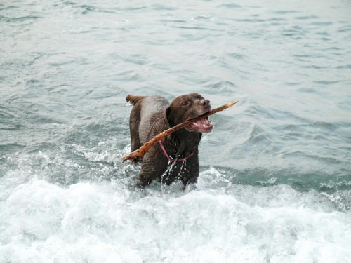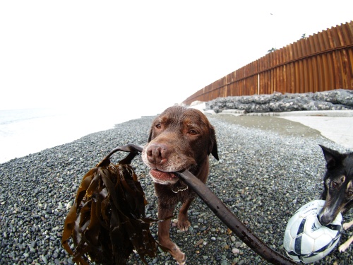 ぱぱが頑張ってオモチャを探したんだけどよさそうなのが無いので、小さな木の流木で遊んだ。やっぱボールの方が盛り上がるんだけど、今日のウサはかなり強引にこのオモチャを奪いに来る。ボクは途中で飽きちゃってぱぱとウサだけがしばらく遊んでた。