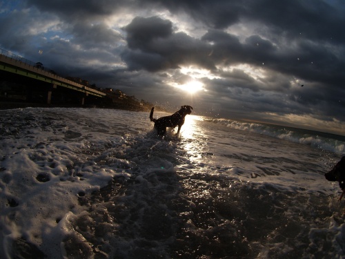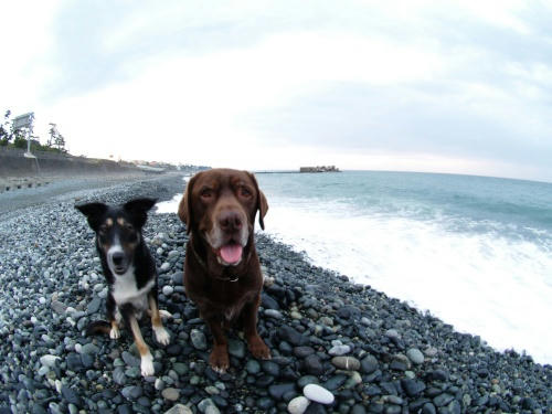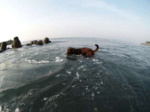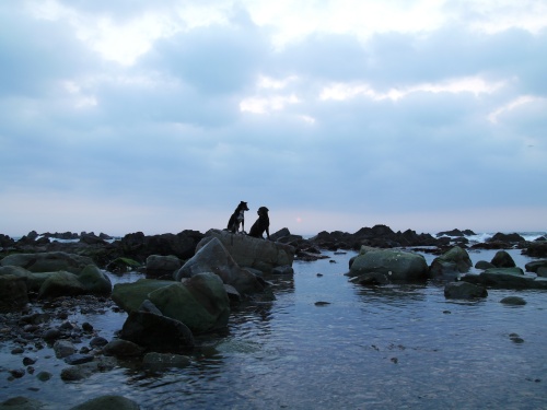 昨日のアピールが良かったのかちゃんと日が昇る前に海に到着。ここは岩がイッパイでウサが走り回るには向いてないけど、岩登りとかは出来ちゃう。ウサの不満を解消するためか夕方には砂浜に遊びに連れてってくれた。ボク的にも砂浜の方が気に入ったかな。