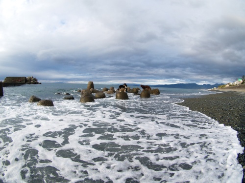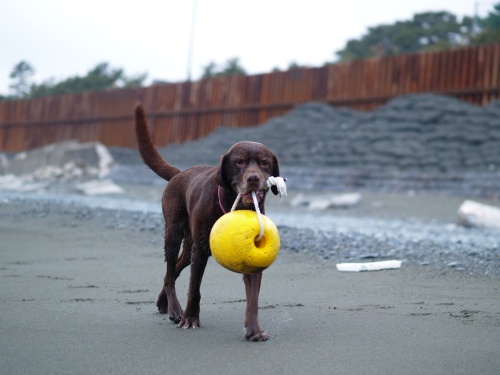 ウサの誕生日だから安静だったんじゃなくて、遊びに使うおもちゃがいまいちだったんだと思う。それに暖かだったからウサが海に突進する確率も高かったしね。