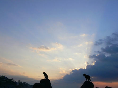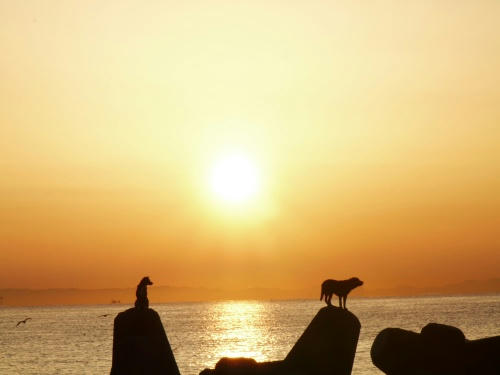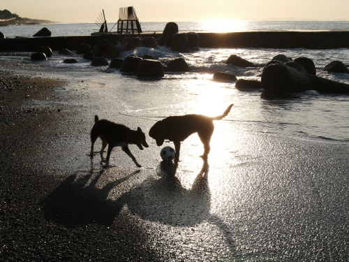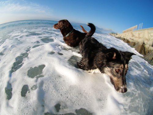 きょうも気持ちよく疲れたね。波乗りもしたし、波の飛越もしたし、かなり泳ぎのリハビリは出来てきたかな。まあ、これをやってるとおやつはもらえないんだけど、それは別に努力すればよい事だし。楽しいね。