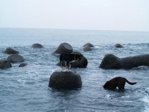 雨といえば暖かい日の定番。ブレイコウだ!海に入っても浜にいても濡れるのは同じだから何も言われない。だから勝手に石拾いタイムで久しぶりに肩まで海に浸かった。でも浸かってる時間は数えて無くても良いんだよ。まあとりあえず石を拾えるまでなんだけどそれも途中であきらめても誰ももんくは言わないしね。