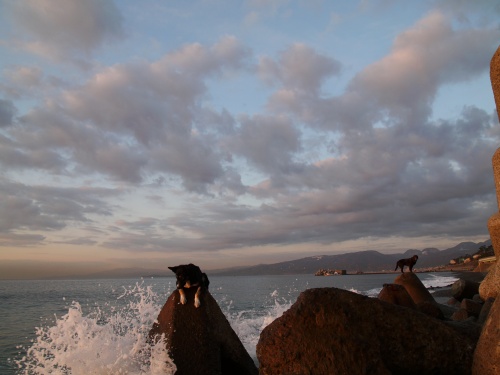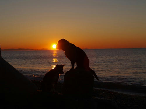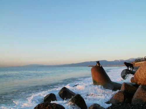きょうは当然ネコさんの日なんだけど、ボクは会わなかったな。何処かで集会とかしてるからかな?ボクはワンコだからそんなこととはぜんぜん関係なく、あさ起きたら最近覚えた最新の技でぱぱを優しく起して散歩に出かけて朝の潮風を満喫したんだよ。