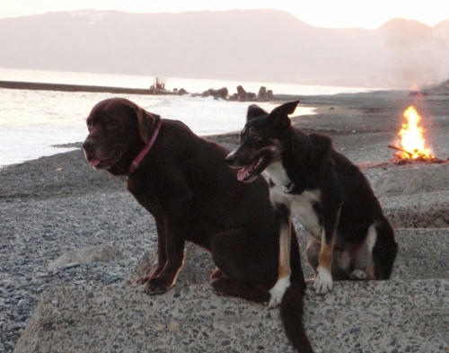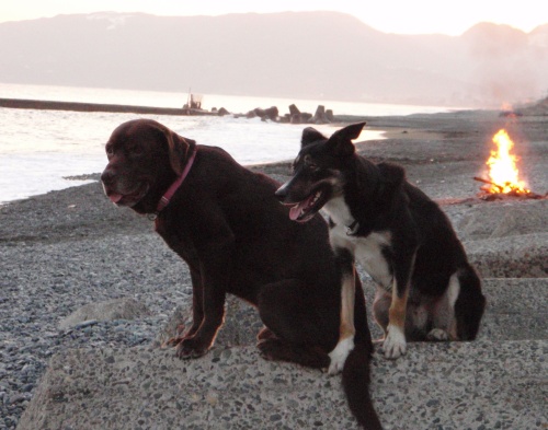きのうと同じく夕方にままと海の散歩。朝は毎日焚き火をしてる場所で夕方の焚き火をはじめてみたかも知れない。今日も昨日と同じメニューだね穴掘りをして少しだけ走って。お昼寝もきのうと一緒だ。