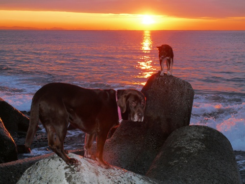 ズイブン昔なんだけど、ボクって朝の散歩を凄く長くしてたんだ。確か2時間くらい。何でかって言うとぱぱがラブラドールの飼いかたっていう本で、ボクタチハ毎日2時間以上運動しなければいけないって事を知ったから。頑張って2時間かかる散歩コースを設計したんだ。それは最初は海に行くんだけど途中で黒ラブのとこに寄って、黄色いラブのお家の前を通って山に登るんだ。それから白いワンコに吠えられながらお寺の前の坂を下ってお家に帰ってくるんだ。昔はぱぱも元気だったんだね。