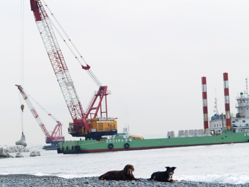 海のブロックに向かう途中でウサはソーセージを発見してぺろぺろ舐めながら何なのか確認してたらぱぱにソーセージを砂の中に埋められた。ボクも発見して見つめてたらぱぱにソーセージを砂の中に埋められた。たぶんヘンゼルとグレーテルが迷子にならないように落としたものじゃないから埋めても問題ないよね。それに埋めても春になってソーセージの木が生えてきたりもしないよね。良くワンコが骨とかを埋めるみたいに思われてるかも知れないけど、ボクタチは埋める前に食べちゃうね。